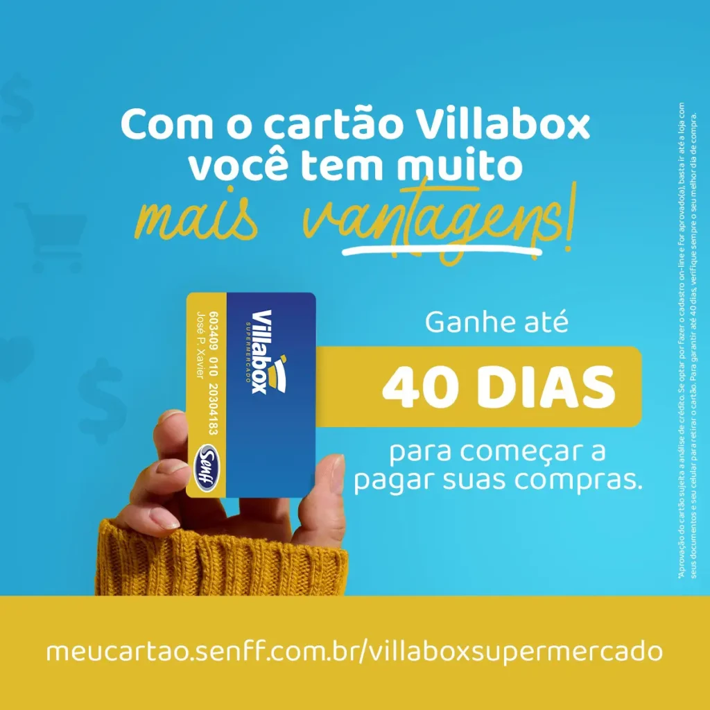 Solicite seu Cartão Villabox e ganhe até 40 dias para começar a pagar suas compras.